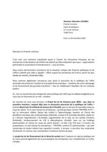 Alexandre Saubot, Président de France Industrie, a signé avec douze organisations patronales et associations d’entrepreneurs, un courrier initié par le Medef et adressé au Premier ministre afin d’alerter sur la hausse de la fiscalité et l’absence d’économies structurelles dans les débats budgétaires en cours.
