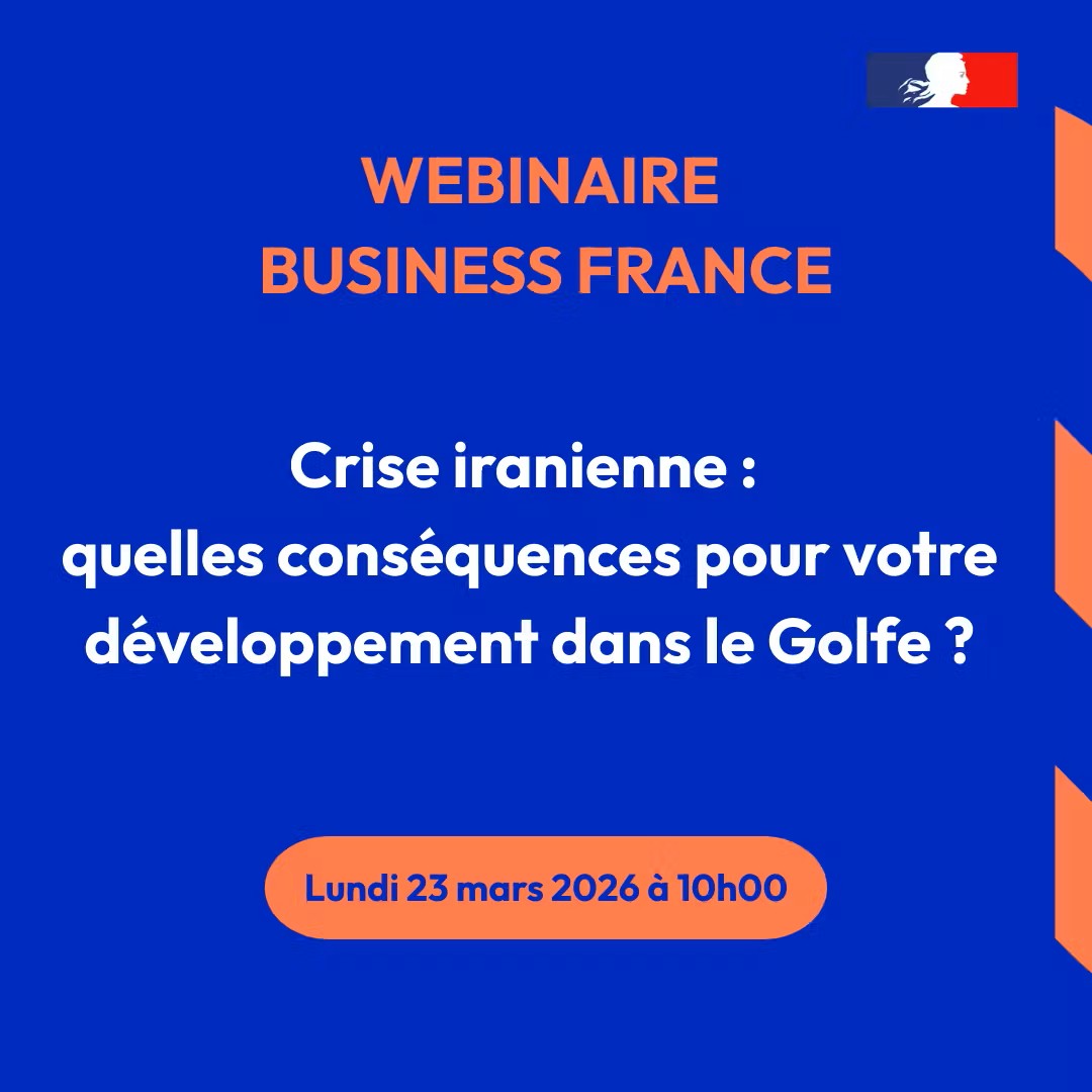 Lundi 23 mars, Business France (l’entreprise publique de conseil au service de l’internationalisation de l’économie française) et ses partenaires organisent un webinaire d’une heure dédié aux impacts concrets de la crise iranienne pour les entreprises françaises.