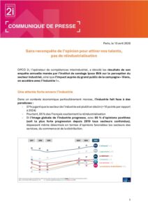 - L’image globale de l’industrie progresse, avec 65% d’opinions positives. L’industrie est jugée comme le secteur qui contribue le plus à l’économie française, qui est le plus innovant, et qui offre les salaires les plus compétitifs,