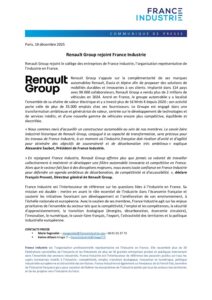 Renault Group rejoint le collège des entreprises de France Industrie, l’organisation représentative de l’industrie en France.
